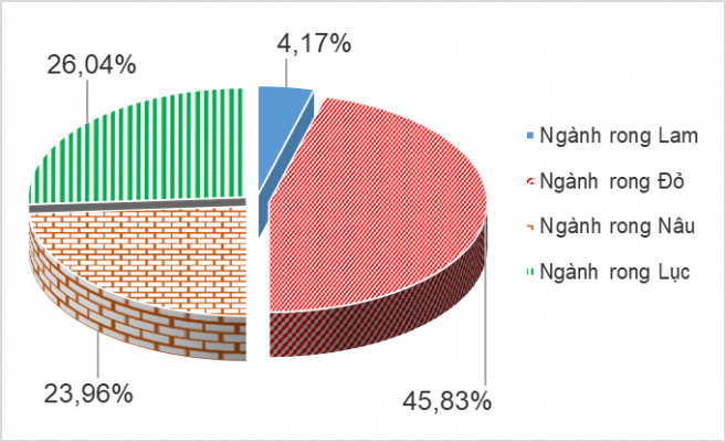 Hình 2. Tỉ lệ thành phần loài rong biển giữa các ngành rong